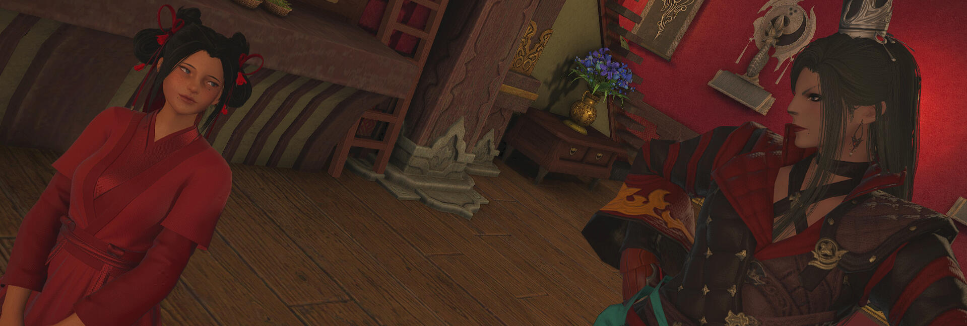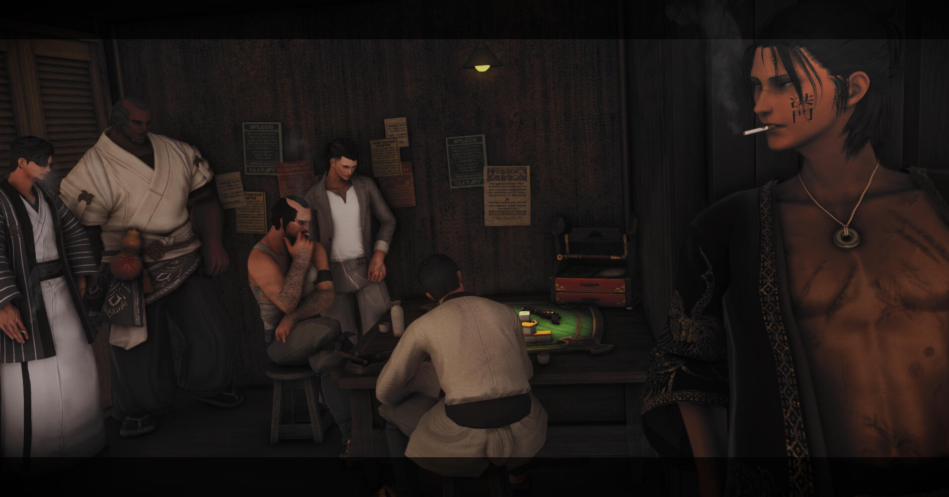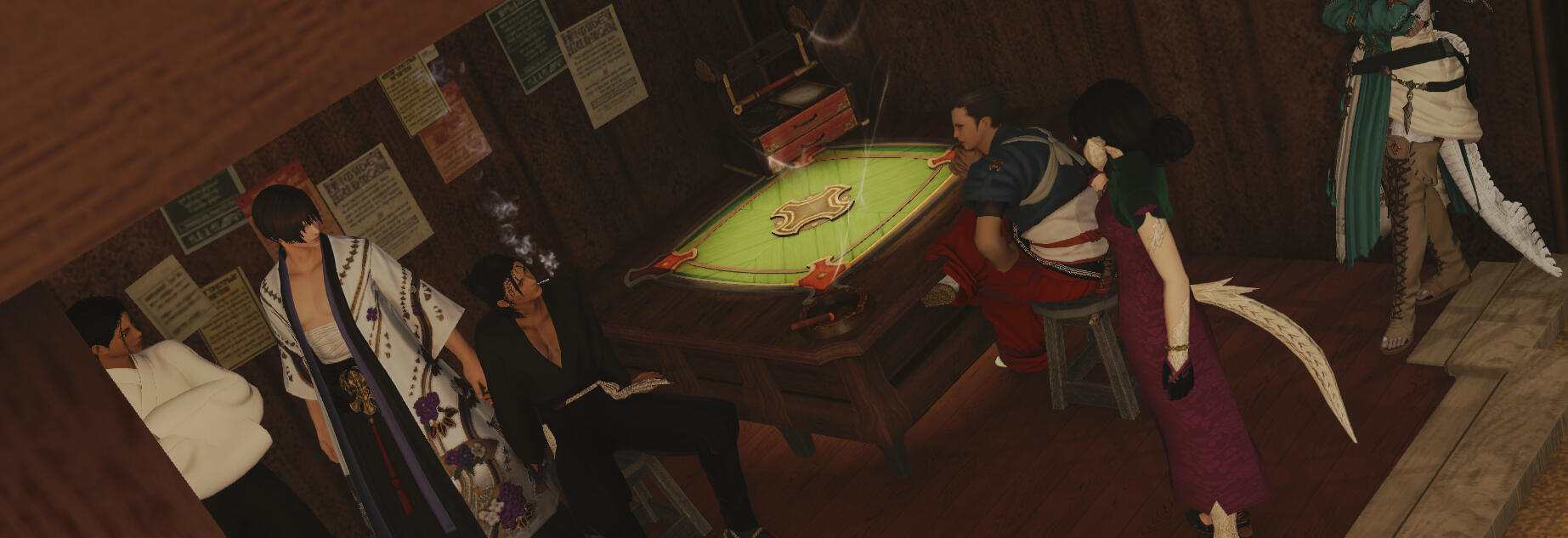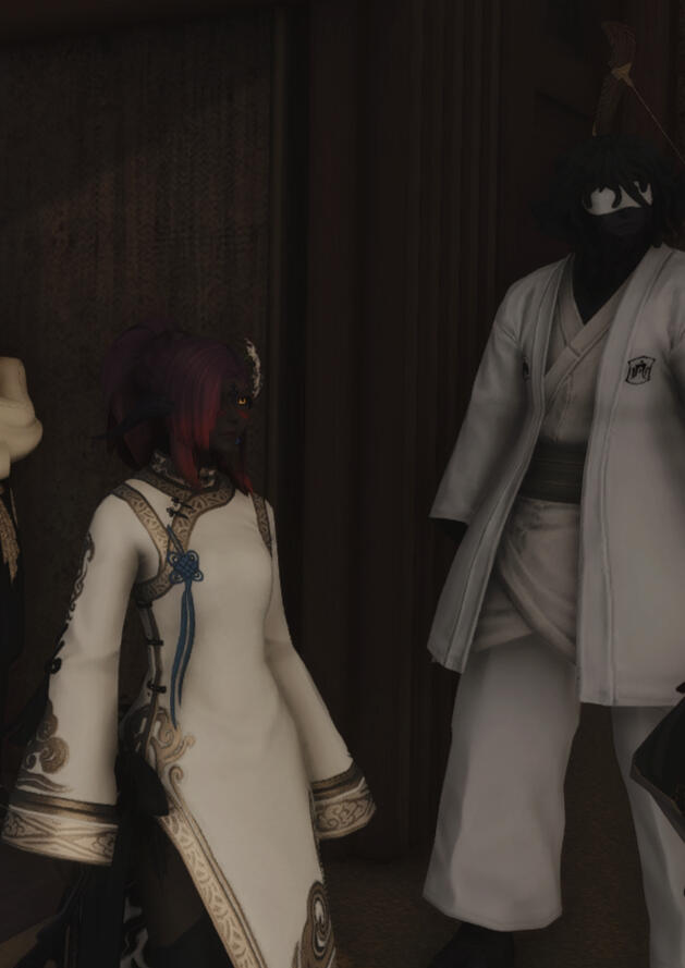 Chinese-coded characters are also a natural fit, criminal or not. Wansui is unique from most FFXIV Far East RP in that it is more Chinese-coded than Japanese-coded. However, Wansui ultimately draws from both Chinese and Japanese cultural motifs, and Japanese coded characters are still very welcome and will fit in just fine in this setting.