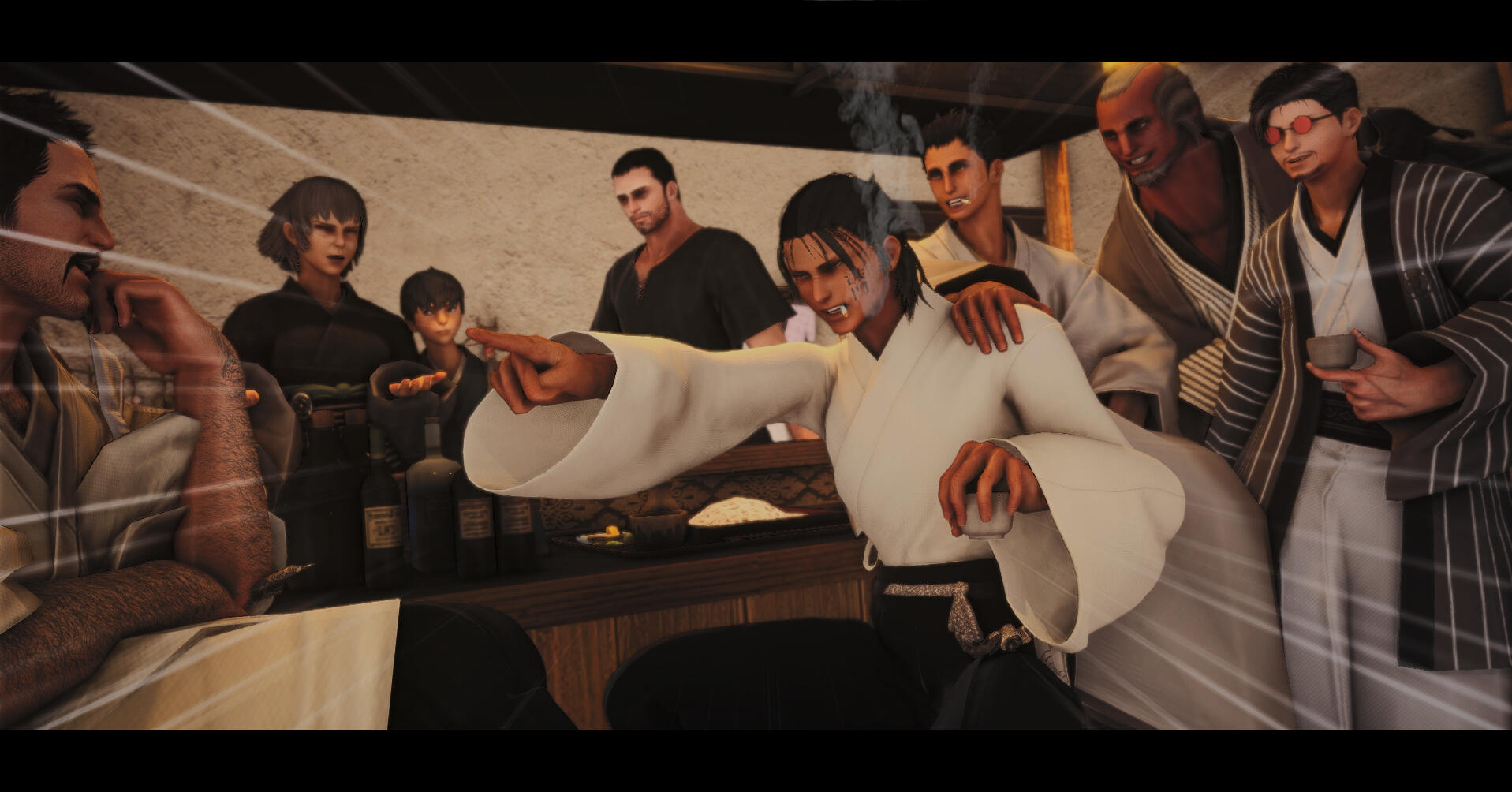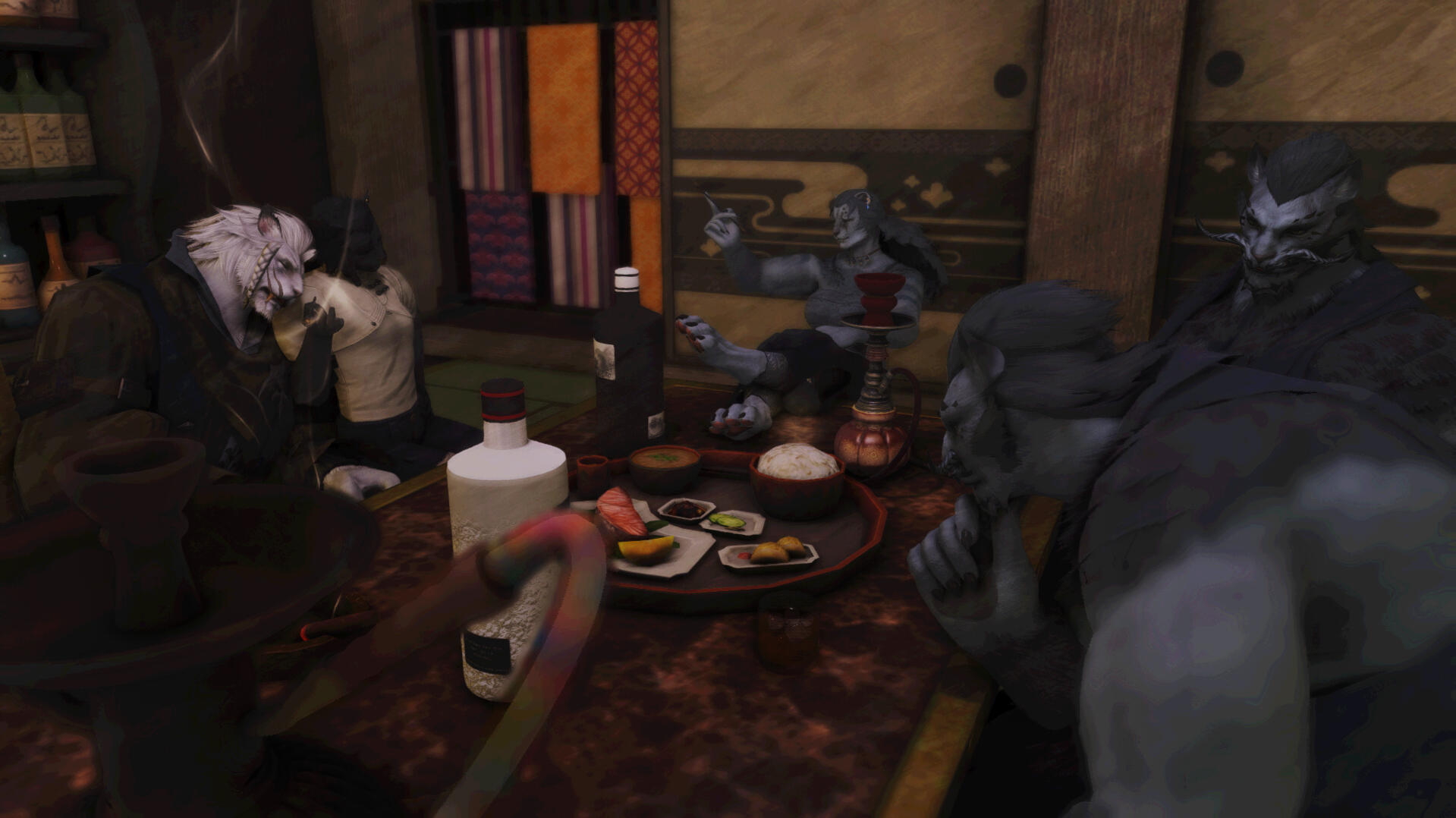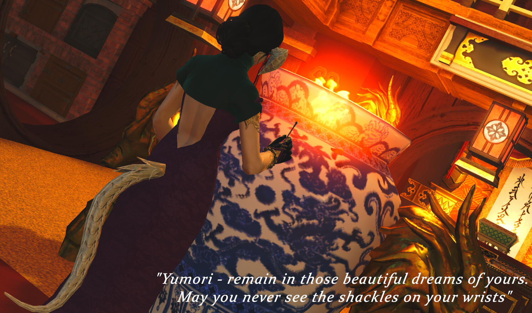Chinese-coded characters are also a natural fit, criminal or not. Wansui is unique from most FFXIV Far East RP in that it is more Chinese-coded than Japanese-coded. However, Wansui ultimately draws from both Chinese and Japanese cultural motifs, and Japanese coded characters are still very welcome and will fit in just fine in this setting.