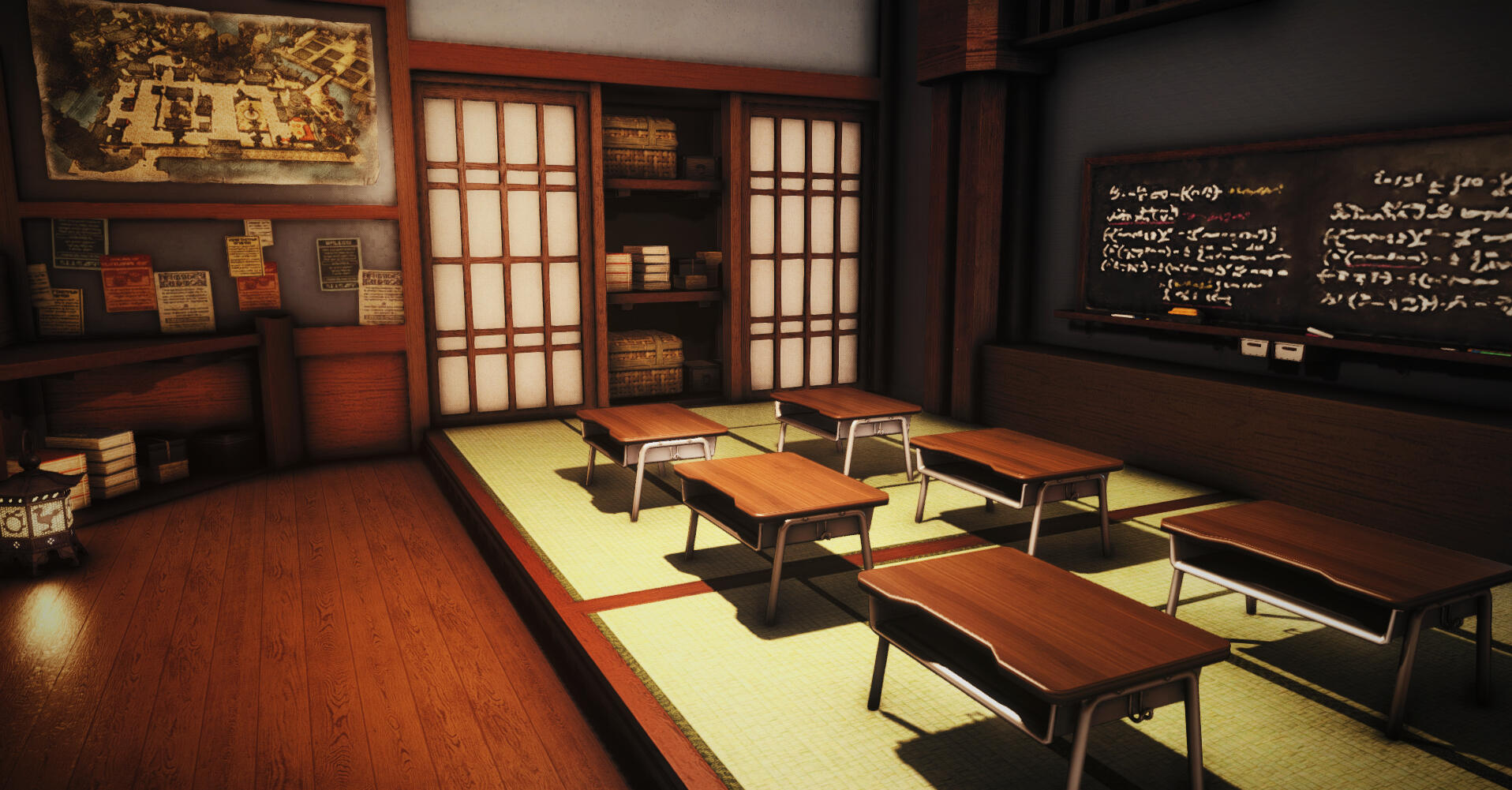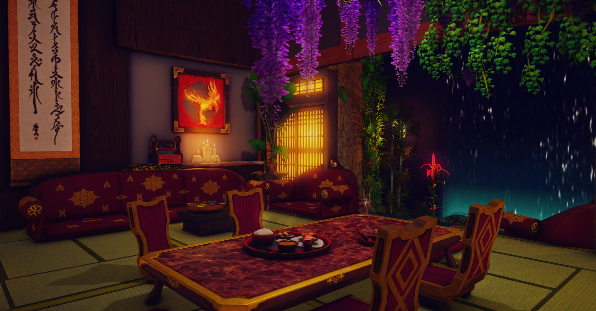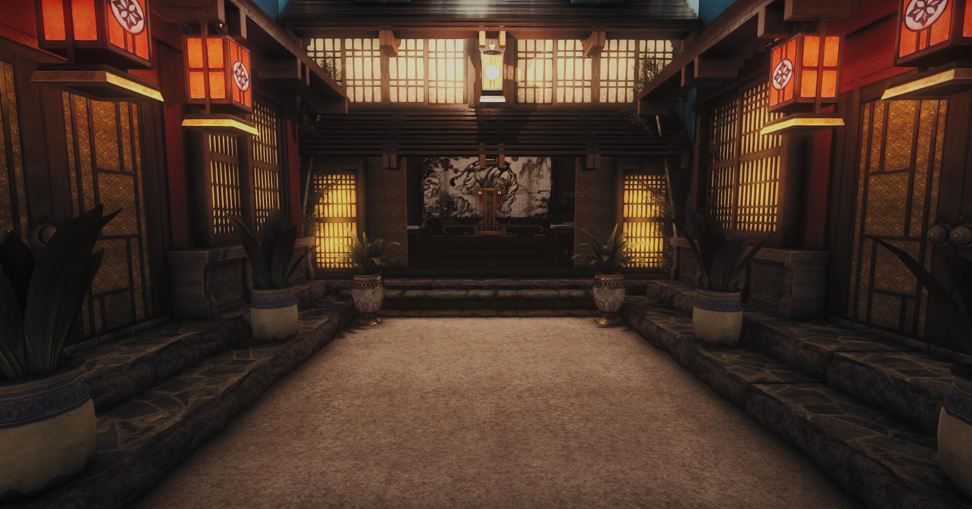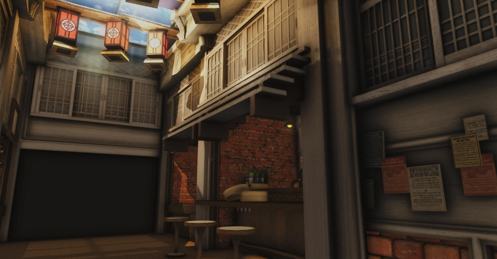 The main RP venue of the Wansui community is located in a large FC house whose interior decoration depicts the outdoor streets of the Wansui Bund as well as several interiors of the decadent businesses upon it.Due to the limited nature of indoor housing, this build does not represent the entire Wansui Bund, but instead depicts Moon Gate Road East, a section of the Bund under the control of the Tin Dei Wui Triad. However, it may be used as a stand-in for other parts of the Bund controlled by other gangs.The Wansui Bund FC house is located at Malboro, Lavender Beds, Ward 28, Plot 36.The businesses located within this build are listed below.