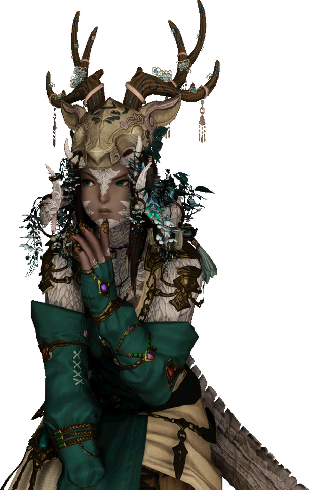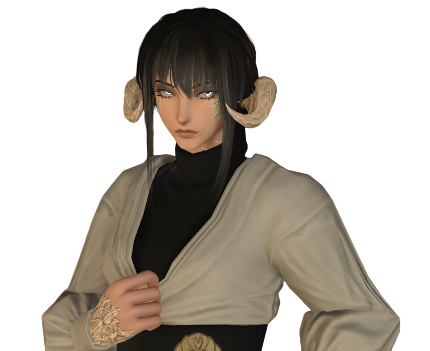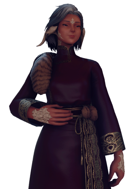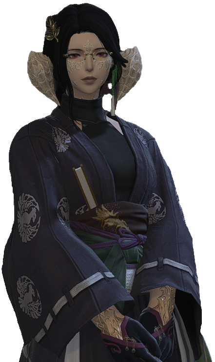 A layered voice captivates as experienced eyes weighted by decades invite one to not simply look, but listen. Omako Mibu is a proprietress of several pleasure establishments in the Rakuza district of Kugane, be it pillowhouses to restaurants and a few bathhouses. With the family name holding deep roots in Kugane, she has recently expanded her enterprises of Wansui, where she has opened the 'Lily of the Other Shore' Smokeflower Lounge in partnership with the Tin Dei Wui Triad.