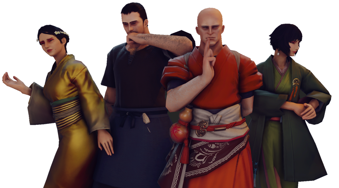 In order to make our setting feel more alive and lived in, we have populated the town of Wansui with numerous NPCs who play both primary and secondary roles in our plotlines. These NPCs are part of Wansui's living, breathing organic ecosystem, and can be interacted with upon request.The people of Wansui are largely split into the following factions listed below: