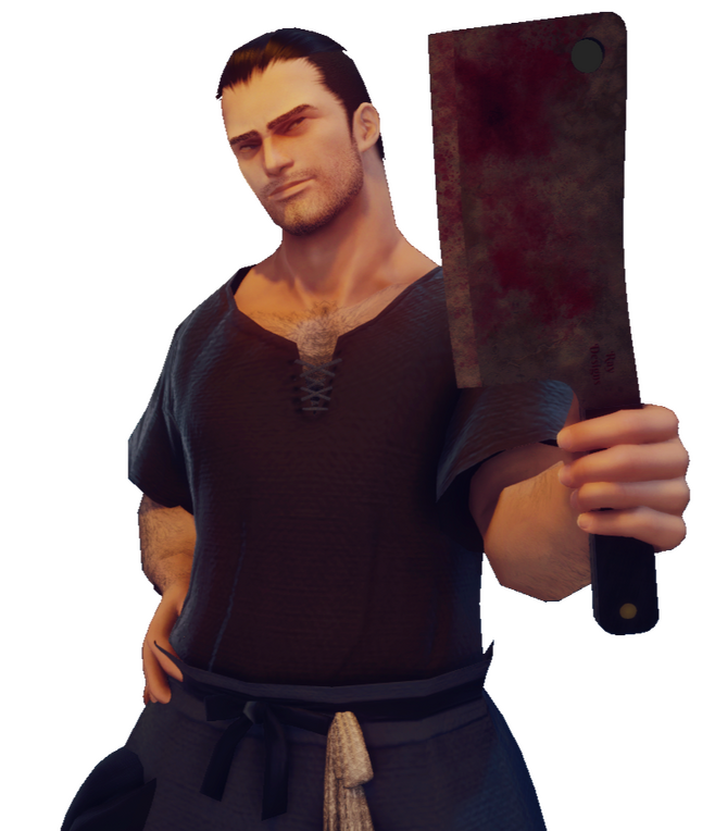 A butcher who came to Wansui to sell meat which is illegal in the rest of Doma, such as dog, monkey, and the ever elusive talkign catfish. He has three fingers on his left hand, which he claims is the result of an accident involving a meat hook.