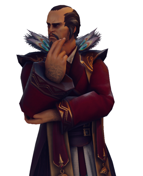 A swaggering, effortlessly confident pirate known by many titles, chief among them: Gan Mheng of the Nine Bells. Every step he takes is marked with the soft, melodic sound of his bells; a sound that can frighten his enemies yet calm the spirits of the sea. Having originally been hired to run Zheng Tianshou's naval blockade of Wansui, he has since entered into a more long-term partnership with the Tian Di Hui Triad to defend Wansui by sea. Sporting twelve ships in total, him and his crew spend most of their time within Wansui, waiting for the next threat to try and sail it self at them.
